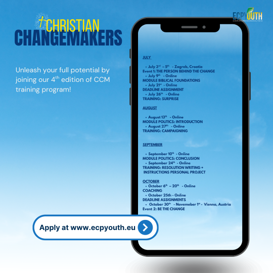 To be considered as a participant, you need to meet the following criteria: 18-35 years old; Running for national or European elections, have an ambition to run for an office or want to work in the political sphere; Have strong Christian values; Members of Member Organizations or individual member of ECPYouth are encouraged to apply; Be willing to commit; Responsibly approach the activities and homework assignments.